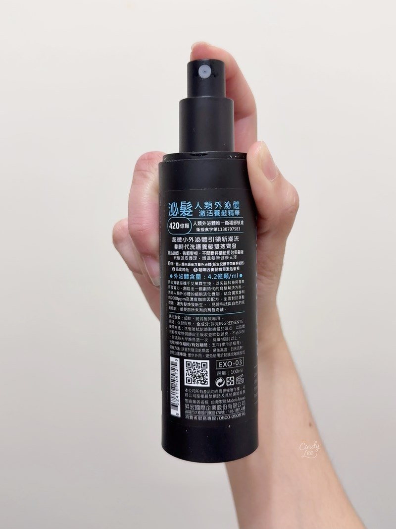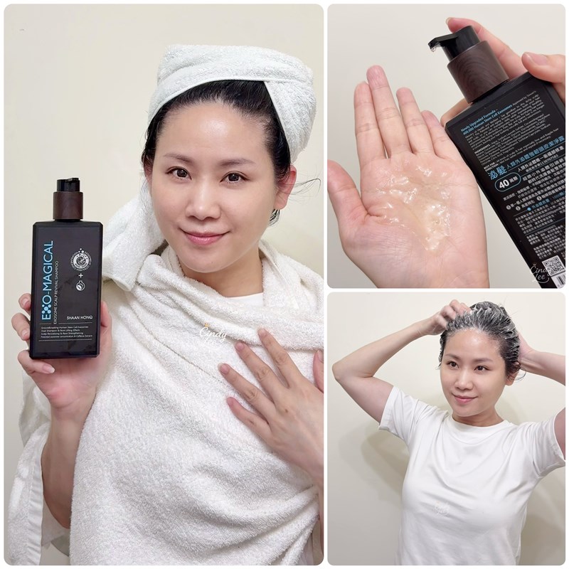 由深耕台灣專業髮粧品逾40年的『昇宏國際』攜手知名生技的跨界合作,以外泌體相關技術概念搭配咖啡因作為產品特色,讓頭皮清潔與日常保養走向新科技路線,這也是讓Cindy想嘗試這組洗護組合的原因。