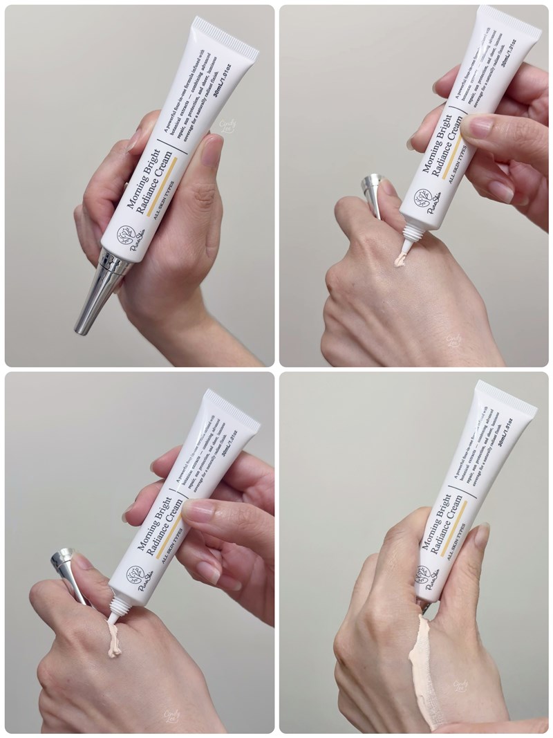 Cindy入手【晨曦煥顏霜】,這款潤色粉底乳能單用、也能當妝前使用的保養型潤色底妝,也適合追求輕薄妝感的使用者。