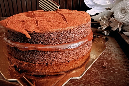 外層柔軟的巧克力戚風蛋糕包著滑順濃厚的榛果奶油,甜中帶香,一口下去濕潤綿密,那溢出來的巧克力醬,邪惡又充滿魅力
