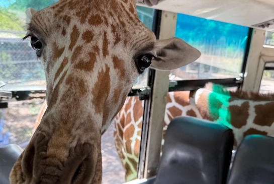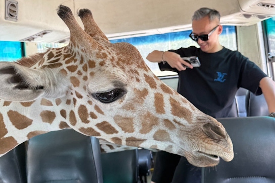 遊園車開到長頸鹿區時,牠們真的會把整個頭「插進車廂」,長得跟窗戶一樣高,伸脖子的瞬間全車尖叫!