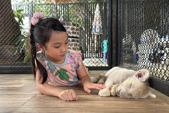 飼育員會在旁邊協助,可以摸小老虎、幫牠餵奶、一起拍照。