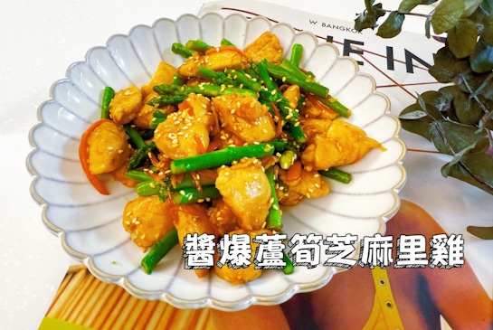 里肌切塊→ 快速嫩煎 → 蠔油+蒜末爆香 → 蘆筍下鍋