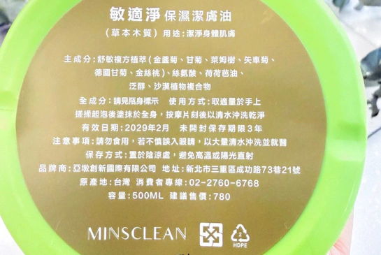 「用油清潔」在臉部保養早已是主流,但在身體護理上,這瓶MINSCLEAN 敏適淨確實走得很前面
