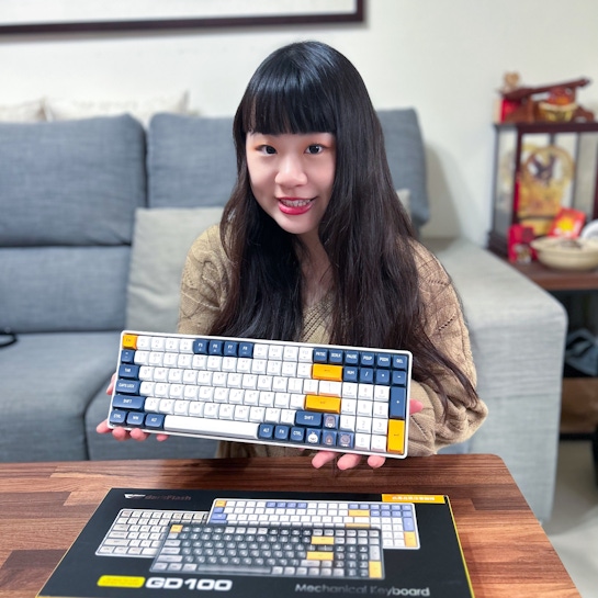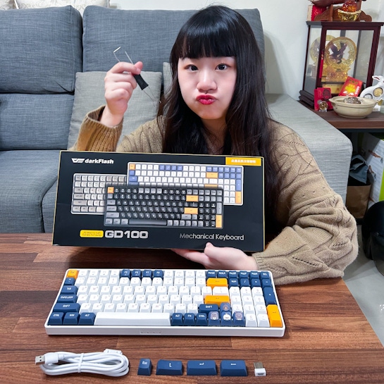 《GD100 機械鍵盤》 ➿共有三種顏色 (焦糖色/奶咖色/星空藍) ➿鍵盤軸承是黃軸(線性) ➿鍵盤鍵數有100鍵 ➿darkFlash可愛吉祥物鍵帽4個