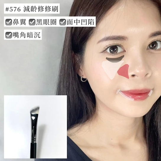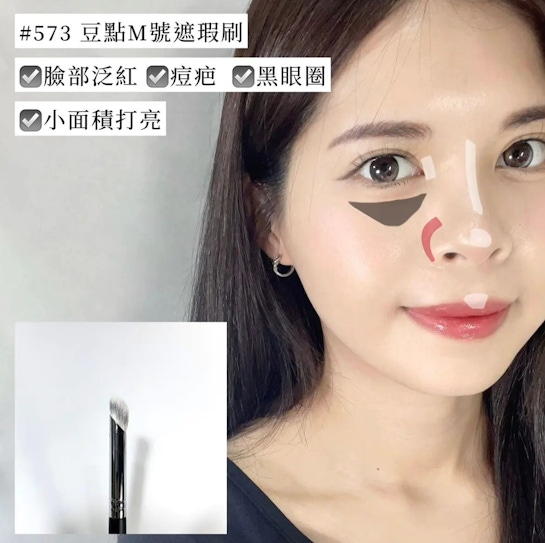 斜面刷頭可以輕鬆貼合臉部, 除了遮黑眼圈外,也可以用來修飾鼻翼泛紅👃🏻