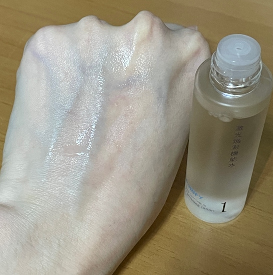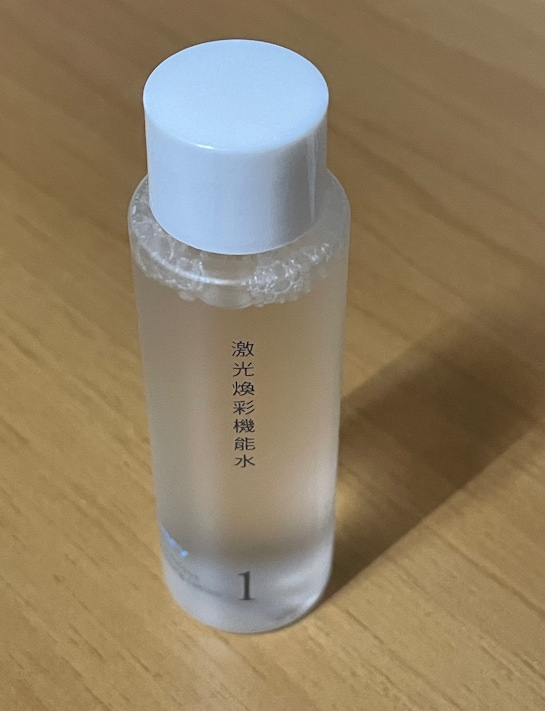 激光煥彩機能水是透明無色,本身也沒什麼味道,初次使用時,臉上有感覺到一點點的微刺感,隔天再擦上就沒什麼特別的感覺了,只覺得這款化妝水好保濕,擦在臉上很舒服,感覺到肌膚很有水潤感。