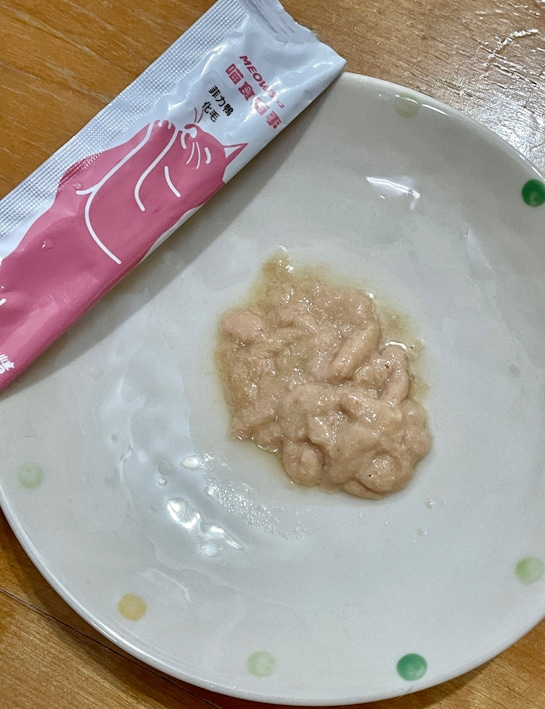 兩種肉泥條一打開,就能聞到濃郁的雞湯味,連我聞到味道都超想吃了,我家阿虎聞到更是一直叫吵著要吃,很快就把一條肉泥條給吃完了!!
