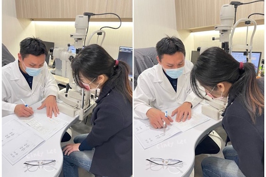 徐醫師評估先儀器檢查確認視差問題及是否有黃斑部及乾眼檢查確認