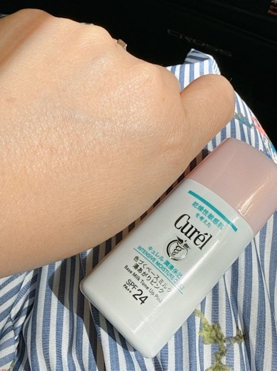 重點是質地! 它是帶奶油感的柔潤乳狀, 延展性好、很好推開、不油不黏不厚重, 推完是自然粉嫩光澤感, 而不是那種死白或卡粉妝感 (我真的怕傳統潤色防曬😮💨)