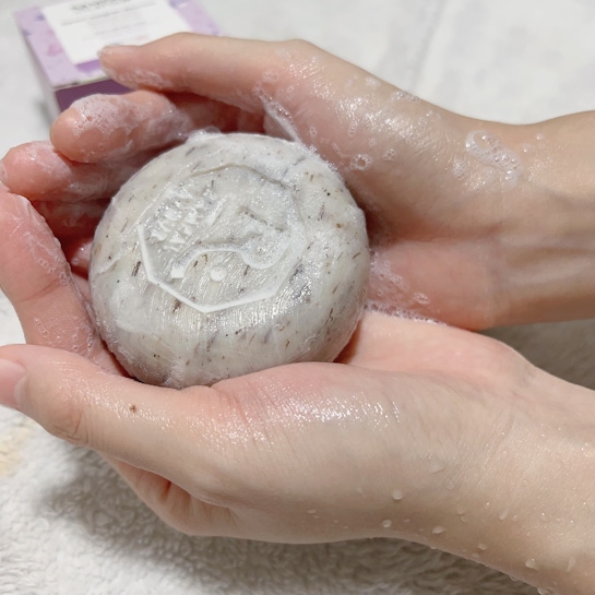 我永遠忘不記當初去日本北海道觀賞薰衣草花田的場景,那時候正值炎熱的夏季,全家人一同到北海道觀光旅遊,而從遊覽車的車窗上,我看到了一團又一團色彩奪目的花田,當然也包括了主角——薰衣草。薰衣草是我最喜歡的花卉之一,甚至房間還擺滿了薰衣草的乾燥花、人造植物,要不是我實在不太會養薰衣草,不然我肯定也會想要在陽台養殖一盆薰衣草來陪伴!這一塊香皂最為特別的地方是在於香皂裡面有放置了薰衣草花籽,所以給我一種更為華麗的感覺,是這次介紹的產品裡面,Sylvia私心最推薦的一塊~