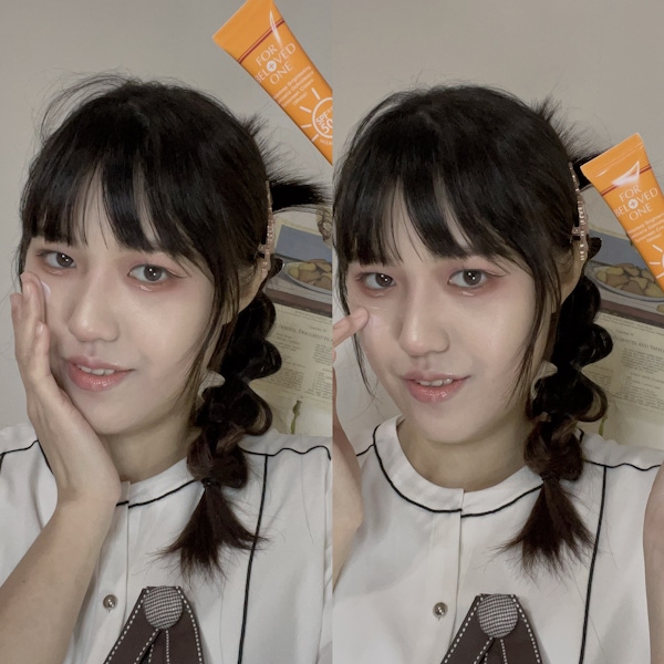 通常擦完這款防曬霜後,我的妝容流程會變得超簡單:塗完防曬後補個遮瑕膏,最後輕輕鋪一層蜜粉就搞定!🧋妝感清爽、自然,對於需要快速出門的日子非常實用~