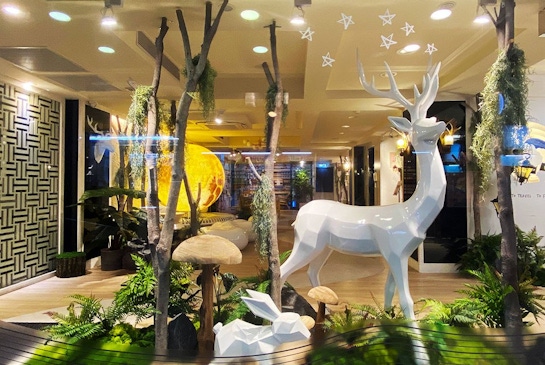 來到【路境行旅-花蓮文化館】像是走進一個魔幻森林,更像是超越時空般,進入了一個奇幻又療癒的永無島,異世紀般的森林國度,讓人充滿了電、揚起了精神,撫慰甚至療癒了日常有如壓力鍋的身心靈。在這邊妳可以很美麗、可以很愜意,可以穿越時空到月球,更可以進入有如愛麗絲夢遊仙境的魔幻時間鳥籠裡,愛看球賽嗎?大廳的懶人沙發讓人慵懶地看著球賽,要是人多還能大家乾一杯,為自己的球隊加油!