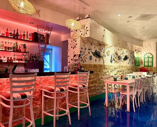 這次造訪 Bodrum Turkish Restaurant,是一場結合味覺、視覺與氛圍的愉悅體驗。餐廳位於市中心,走進店內,首先感受到的是溫暖又帶點摩登感的空間設計:石牆搭配柔和的紅色燈光,吧台後方陳列著酒瓶,整體氛圍既有地中海的熱情,也帶著都會餐酒館的時尚感,非常適合朋友聚餐或輕鬆約會。