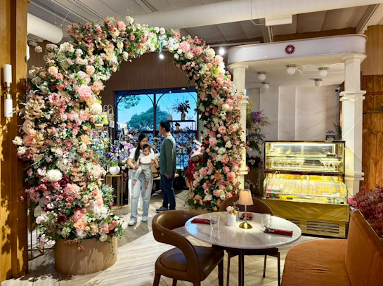 一進門,我就被 GIWA 的空間設計給驚艷到了。大片的淺粉色與象牙白交織,吧檯上裝飾著滿滿的粉嫩色系花束,整體色調優雅又帶著一點少女的浪漫(Morandi 色調愛好者絕對會瘋掉!)。這種現代韓系的室內風格,讓每一張隨手拍下的照片都自帶高級濾鏡,完全是為社交媒體量身打造的場景。