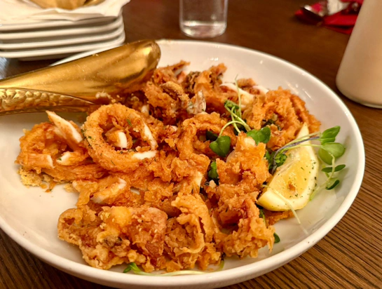 • 酥炸花枝 (Calamari): 炸得金黃酥脆的外皮包裹著鮮甜 Q 彈的花枝,配上清爽的檸檬點綴,是完美的開胃首選。
