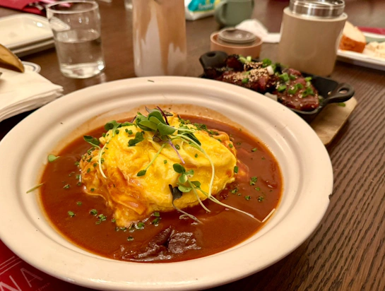• 創意歐姆蛋飯 (Omurice): 那層厚實滑嫩的半熟蛋包,淋上濃郁的深色醬汁,口感豐富且紮實,每一口都是滿滿的幸福感。