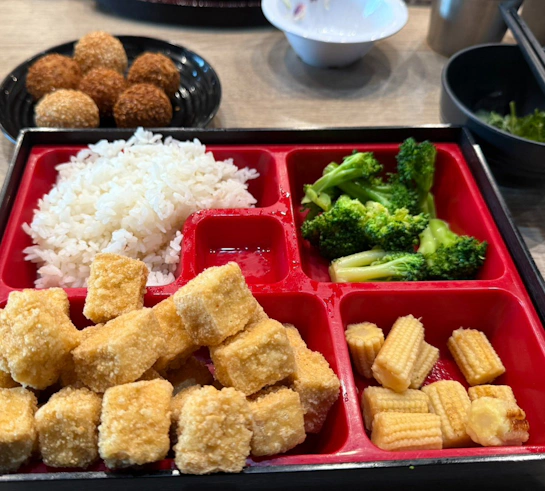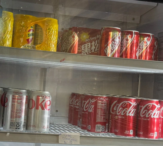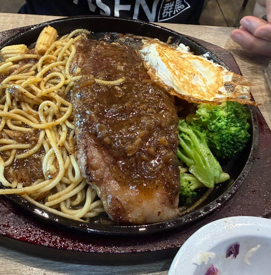 我們點了一份招牌的鐵板牛排,當服務生端上桌,那種「滋滋作響」的聲音與噴發的黑胡椒香氣,還有旁邊附上的半熟蛋與鐵板麵,這不就是小時候最愛的味道嗎?另外還點了酥炸豆腐與青菜組成的台式便當,清爽又紮實。最讓我驚喜的是,冰櫃裡竟然排滿了蘋果西打和黑松沙士!在台灣隨手可得的飲料,在國外卻成了睹物思情的寶貝,喝下一口滿是氣泡的甜蜜,彷彿也喝下了家鄉的空氣。