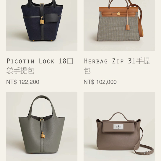1121109更新:早上10:00出現很多HERBAG ZIP 31、HERBAG MESSENGER 39、LINDY26、PICOTIN 18、24/24、ROULIS23、JYPSIERE、GRADEN PARTY30、CABASELLIER31、新款耳環