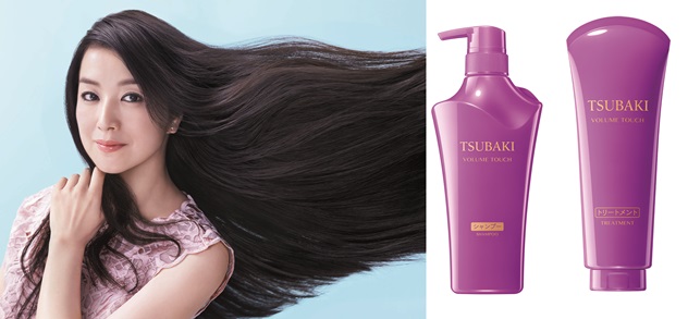 鈴木京香是TSUBAKI思波綺紫色「上質豐盈系列」的代言人,這系列是適合給軟塌髮的人使用。