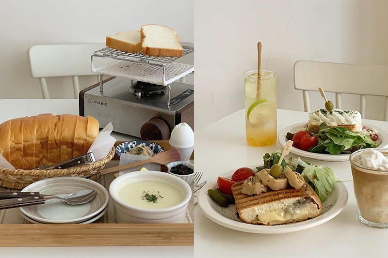 位於大安站mumi café,韓國咖啡館還原度百分百,完全就是來到了韓國呀!純白色系的裝潢風格,光是店門口就非常有質感,店內每個擺設和用具,都是老闆精心挑選,從韓國帶回來的,只為了打造夢想中的「韓系咖啡館」。自烤吐司套餐是最多人點的人氣餐點,木頭質感的卡式爐,可以自己烤出喜歡的焦度,搭配顏色鮮豔的果醬、南瓜濃湯,不只好看,也很好吃!
