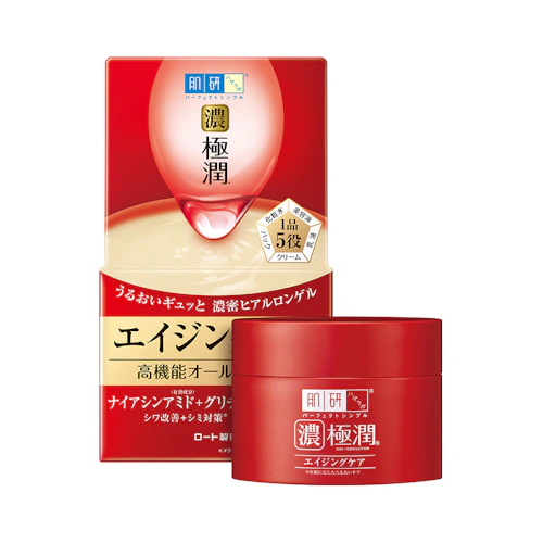 這罐強調的是:細紋改善x黑斑對策,致力在抗老保養上,也是肌研第一支日本厚生省核准藥用的抗皺化粧品,添加雙重有效成分「菸鹼醯胺、甘草酸二鉀」,能撫平眼周、嘴角在意的細紋,恢復雙頰緊實平滑,同時打擊頑固斑點