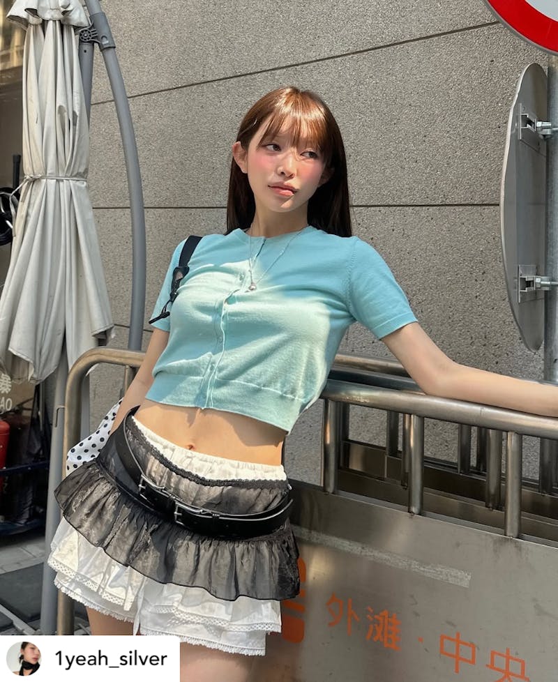 韓國女生開始偏好「輕盈材質」的單品,像是蕾絲、薄針織、半透明感布料等,穿起來舒適、透氣,還能自然的營造出時髦、飄逸的氛圍,非常百搭。