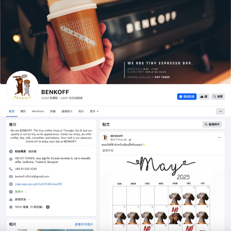 ▲BENKOFF CAFÉ的官方Facebook帳號。
