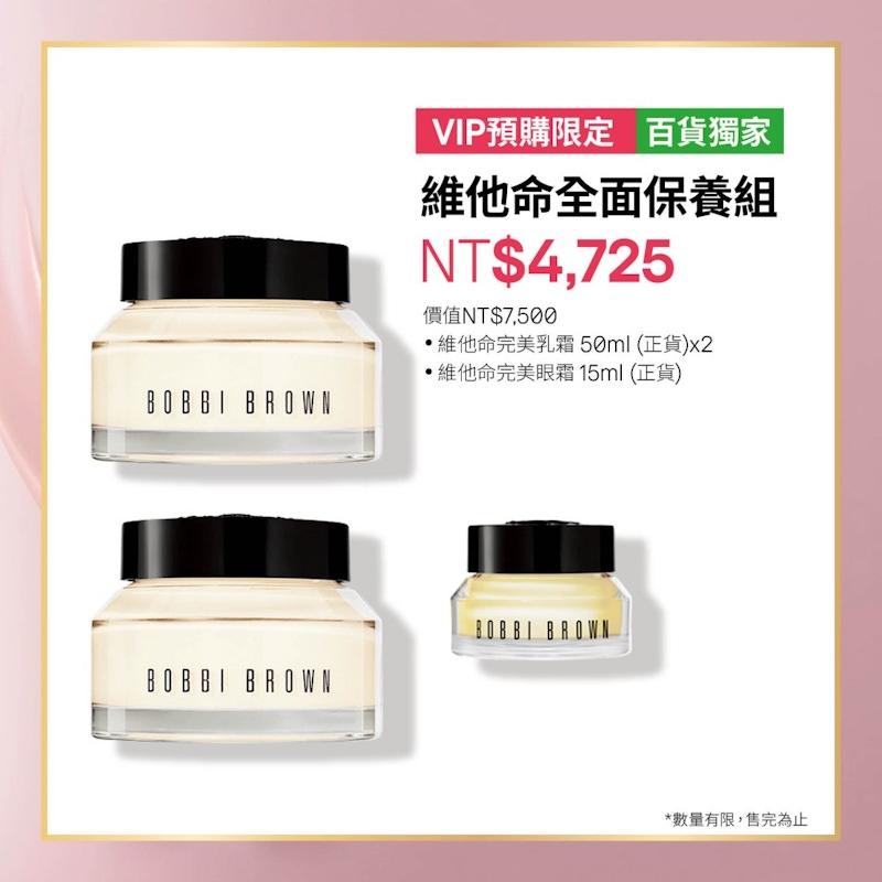入秋保濕超前部署、醫美術後修護,一瓶優秀乳霜美肌神救援!敏感話題「急救小隊」d敏小粉瓶及修護霜一起帶直接省 650 元,日常+急救一次打包此妝師的妝前保濕打底、貼妝神器Bobbi Brown維他命乳霜,買兩瓶送眼霜,從眼到臉一次呵護,讓肌膚在秋冬水潤在線。