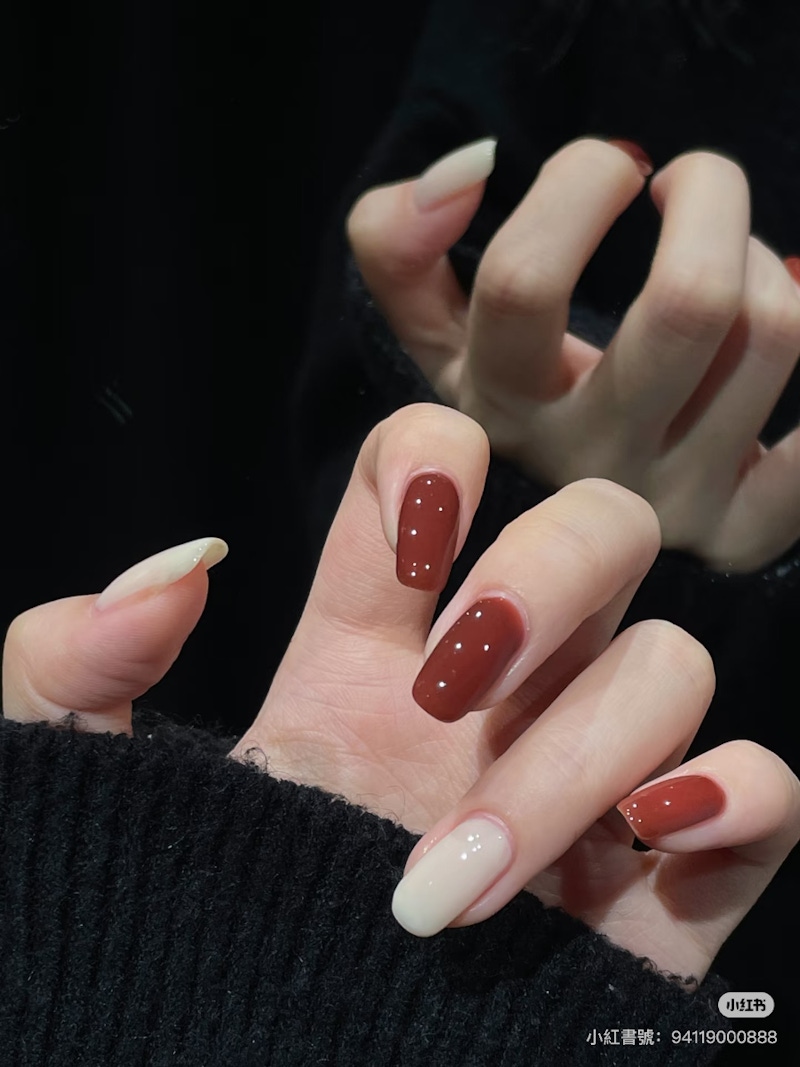 磚紅色是最能展現秋日溫度的經典色調之一,它介於紅色與棕色之間,色彩飽和卻不刺眼,沉穩中帶著一點柔和的氣息。選擇霧面質地能讓美甲更顯溫潤,與秋冬的氛圍完美契合,不需要過多的裝飾就能讓指尖質感升級。如果想要增加一點細節,也可以搭配細金線、貓眼與拼接設計,營造出更豐富的層次感。磚紅色兼具溫柔、氣質與穩重的特質,是秋季絕對不會出錯的經典之選。