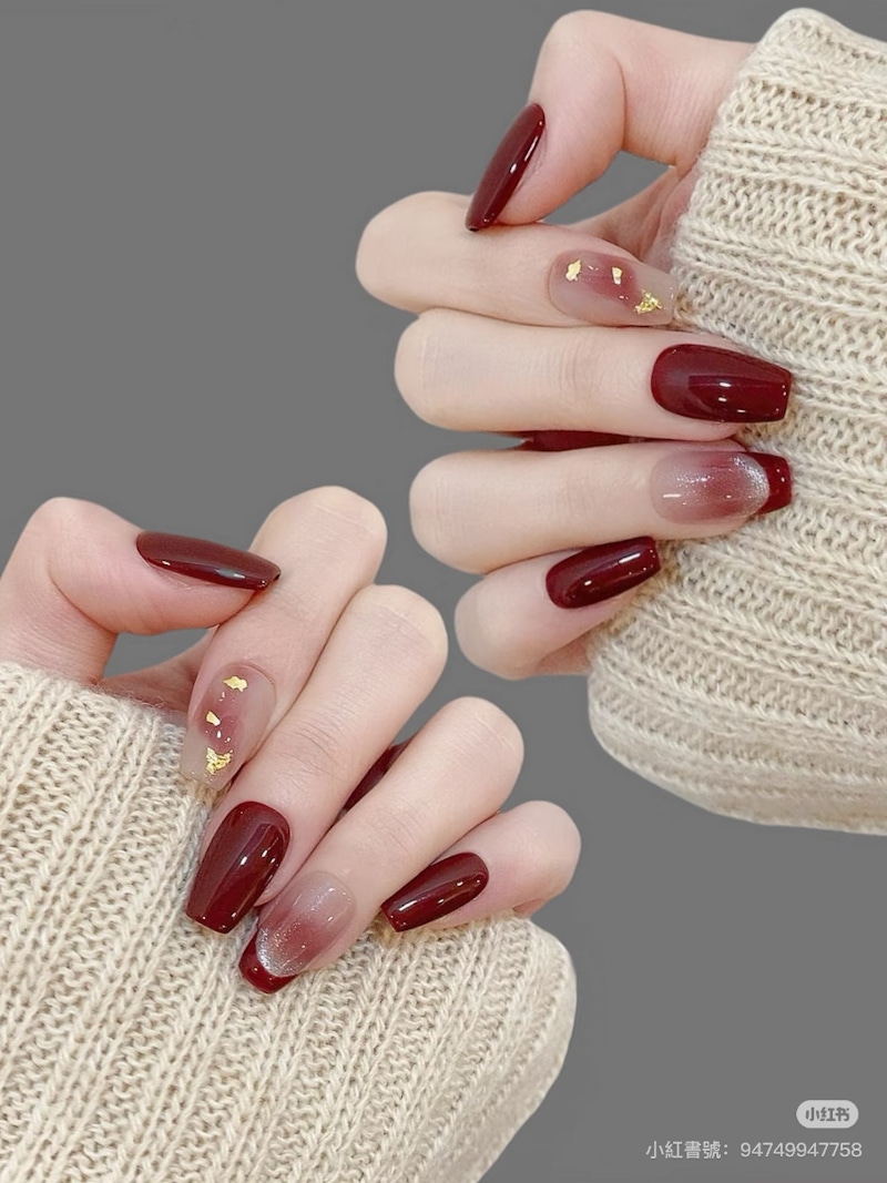酒紅色在秋季總是能輕鬆營造出濃厚的季節氛圍。深邃的紅調帶著一絲成熟與優雅,既穩重又不失性感魅力,看似低調卻依舊能成為全場焦點。它的適配度極高,不管是搭配光澤還是霧面質感都各有韻味,也能與金箔、線條等細節設計結合,為整體造型增添亮點。每到秋冬季節,酒紅色幾乎都是不敗的熱門色,塗在手上不僅特別襯膚,更能讓氣質瞬間升級,展現迷人的成熟氣場!