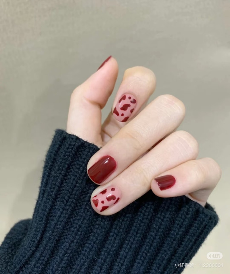 ▲酒紅色搭配動物紋設計會讓指尖展現出更明顯的風格感。圖片來源:小紅書 @玲玲爱捣腾