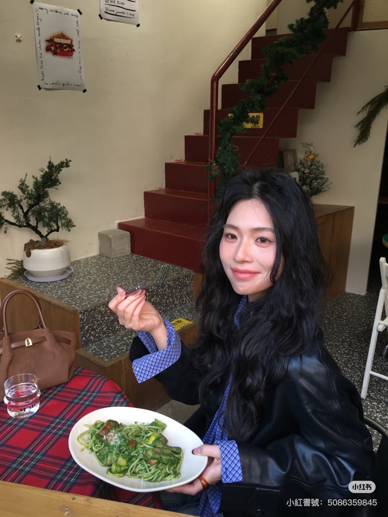 ▲在皮衣外套裡面加一件棉質外套,是非常適合冬天的層次穿搭。圖片來源:小紅書 @大大大珊
