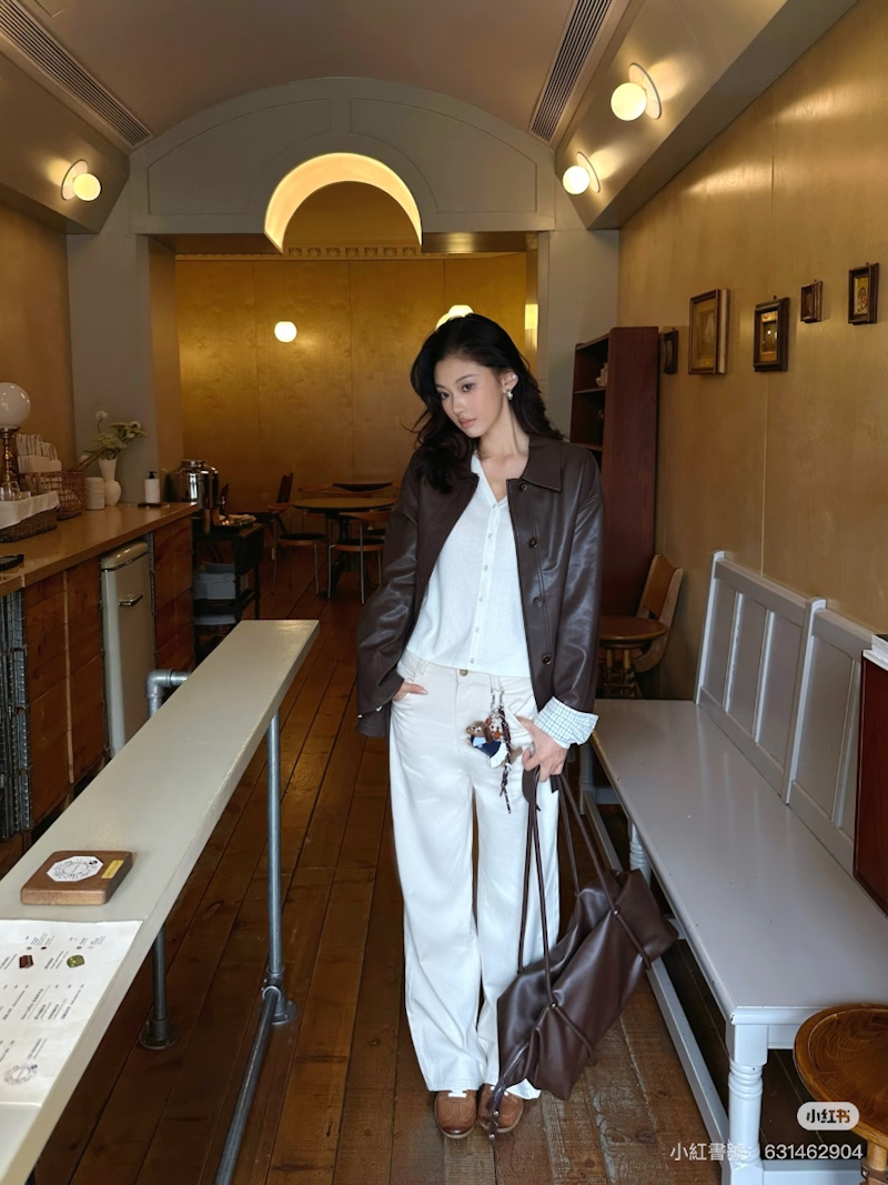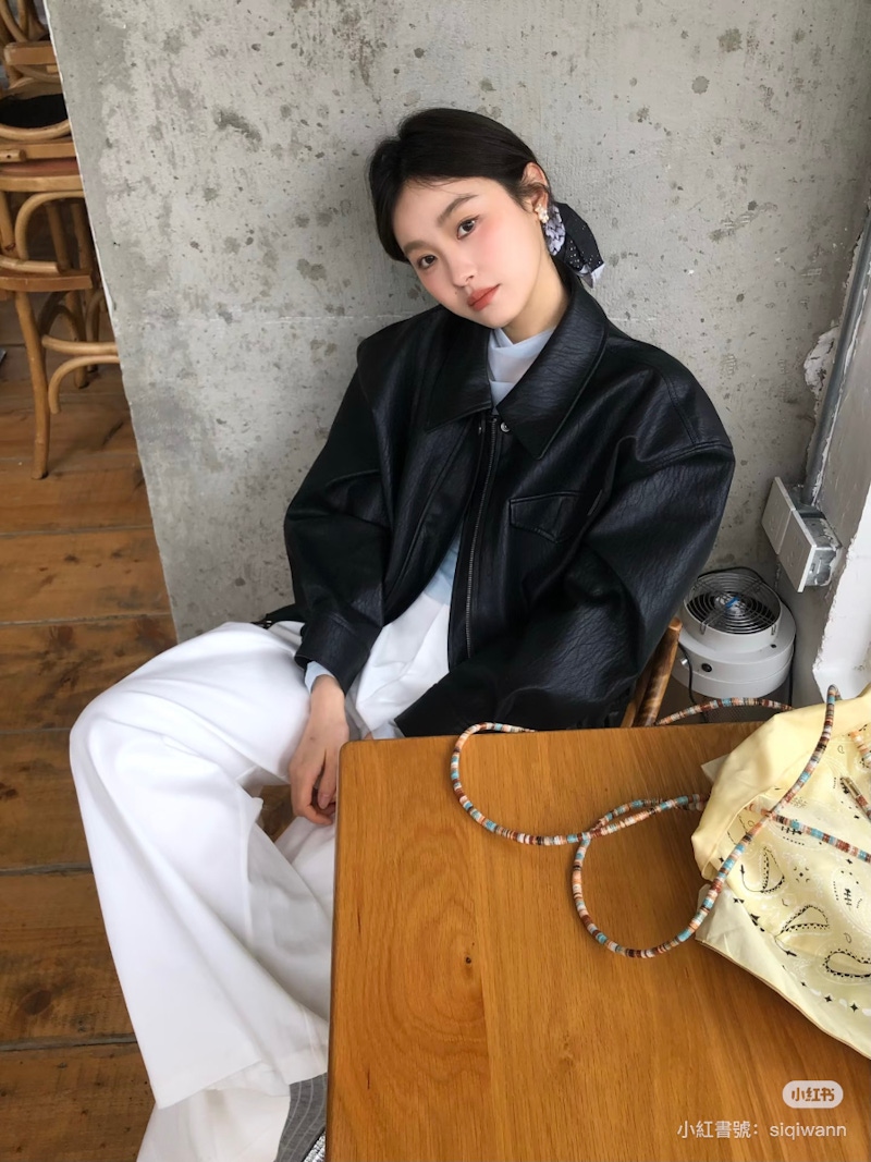 ▲皮衣外套搭配襯衫能夠展現清爽、俐落的成熟氛圍。圖片來源:小紅書 @铌铌日记