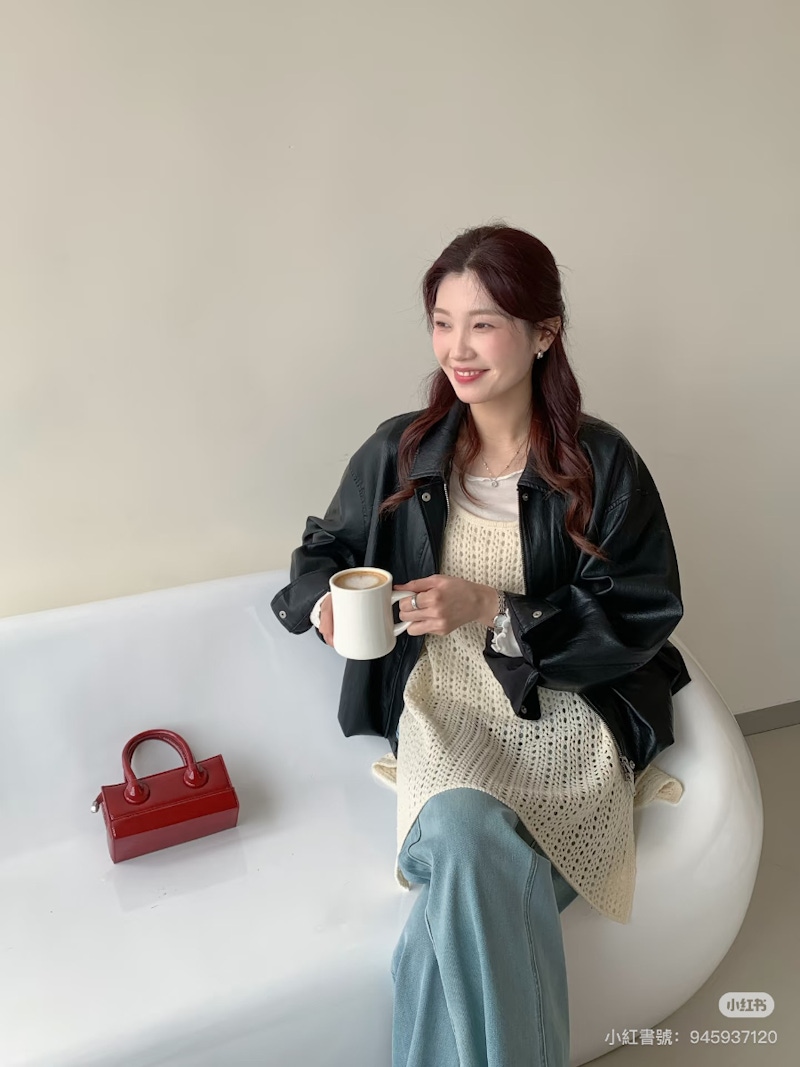 ▲針織衫搭配皮衣外套是既實用又耐看的層次搭法。圖片來源:小紅書 @方可以