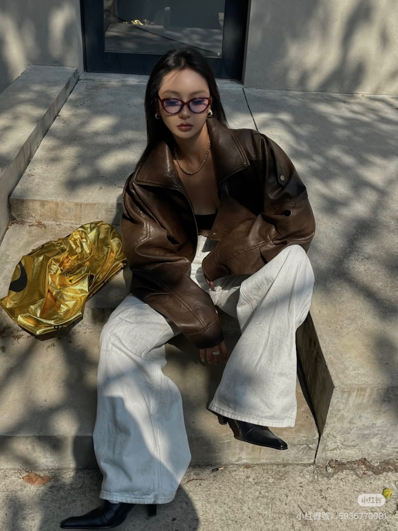 ▲皮衣搭配牛仔褲絕對是經典中的經典,永遠都不會出錯。圖片來源:小紅書 @杜杜 DDOUU