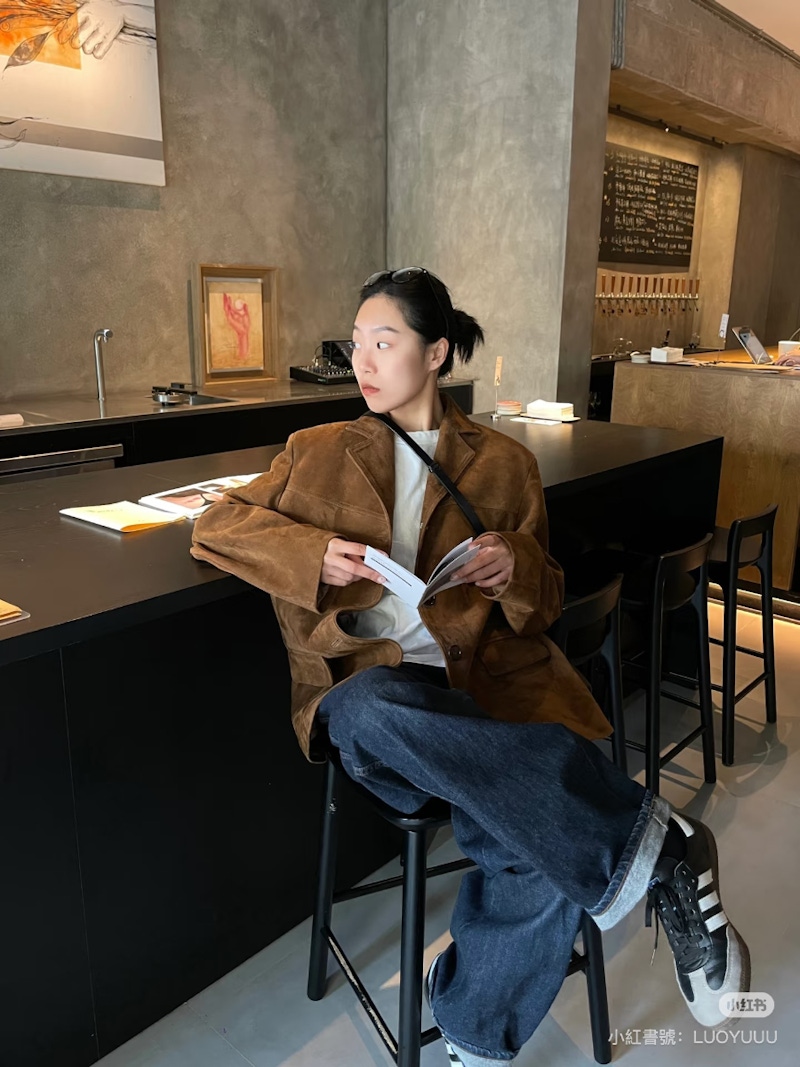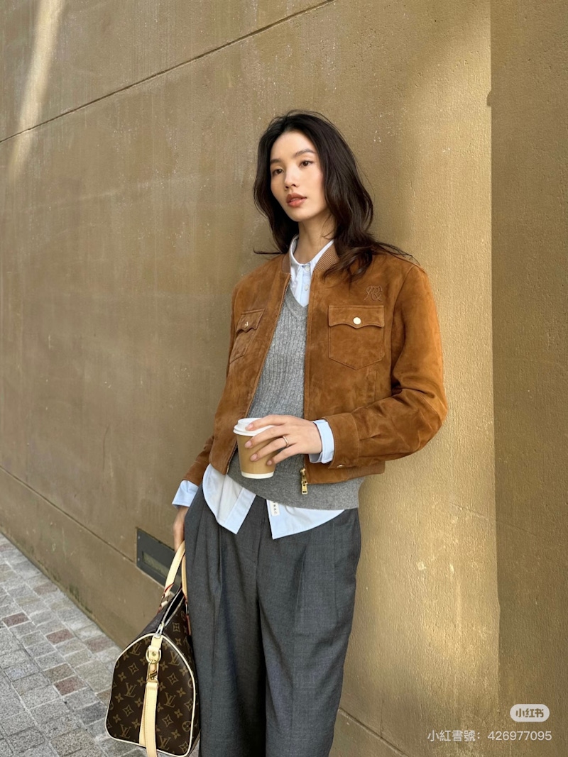▲麂皮夾克兼具率性與優雅,是秋冬衣櫃中不可或缺的經典款式。圖片來源:小紅書 @常晓曼