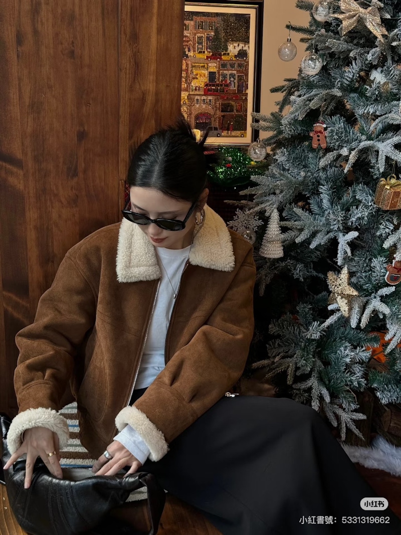 ▲麂皮絨毛外套是秋冬最能展現溫暖質感的單品之一。圖片來源:小紅書 @Morninglook