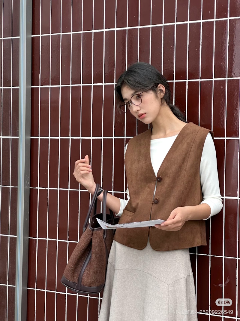 麂皮背心在秋冬穿搭中是一款輕盈又實用的中層單品。它能在保留活動度的同時增加保暖效果,霧面質感也能讓造型更具層次。不管是內搭襯衫、針織衫,還是高領上衣,麂皮背心都能為造型增添一份柔和的復古氣息;這款單品的重點在於「輕鬆堆疊」,一穿上就能讓整體造型兼具時尚感與實穿性,同時也能透過不同材質的層次搭配,展現出秋冬特有的溫潤質感與個人品味。