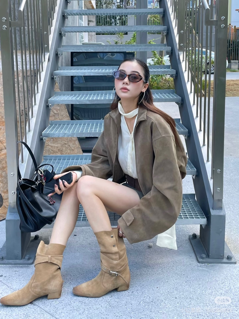 麂皮靴子是秋冬季節中不可或缺的經典鞋款。絨面材質在光線下會呈現出柔和的反光,讓鞋型看起來更加立體;它不僅可以修飾腿部線條,也能提升整體造型的完成度。不管是短靴還是長靴,麂皮質感都能帶出一種自然又高級的氣息;無論是通勤、約會、上班或正式場合,麂皮靴子都能展現出溫度與質感兼具的秋冬風格,也能讓造型更加俐落、有型,展現出穩重又不失時髦的氣場。