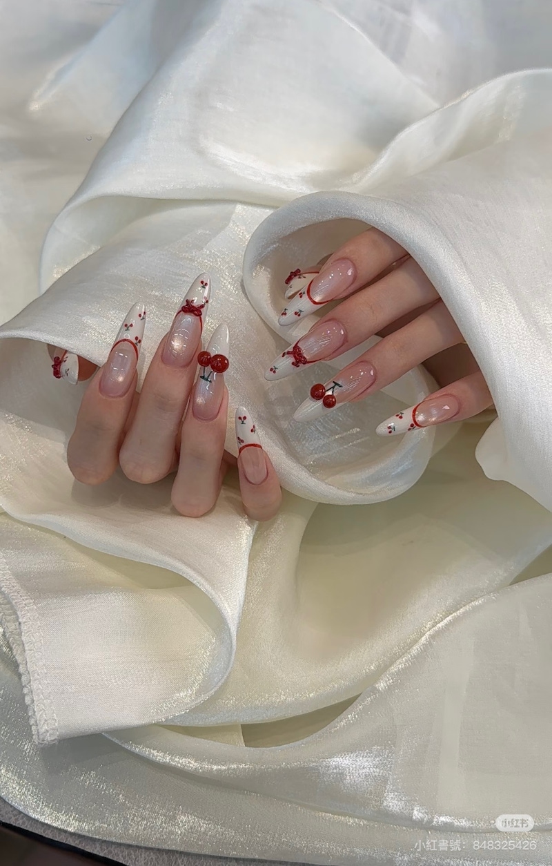 ▲櫻桃法式美甲以可愛的紅調點亮指尖。圖片來源:小紅書 @三斤