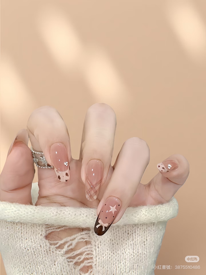 豹紋法式美甲以細緻的豹紋點綴指尖,營造率性又帶點叛逆感的氛圍。因為只有在指尖呈現豹紋元素,因此美甲整體看起來不會過於張揚,反而有種精緻又時髦的平衡魅力。搭配裸色、奶茶色底色時,豹紋的質感還會更加突出,讓美甲呈現出帶點個性卻不失優雅的視覺效果,非常適合喜歡小心機,但同時又想保留一點高級感的女孩們。