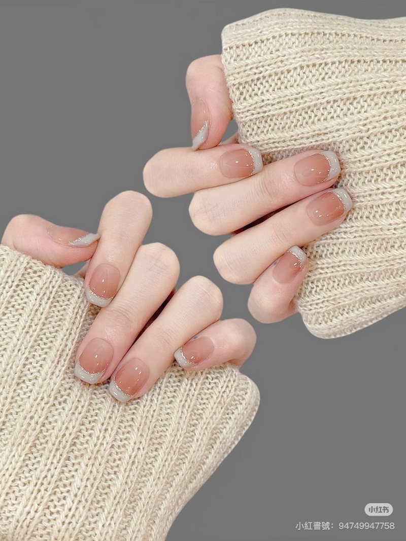 毛呢法式美甲以溫暖的毛呢質地為主調,指尖呈現柔霧、細密的紋理,讓手部充滿了濃厚的秋冬氛圍。底色保持乾淨、簡潔,可以讓毛呢紋路變得更加突出,在視覺上也能呈現出溫柔又有質感的效果。毛呢法式美甲帶著溫暖、柔和的氣息,非常適合寒冷的季節,能讓手部看起來更加柔軟、溫潤,是秋冬限定的高質感款式。