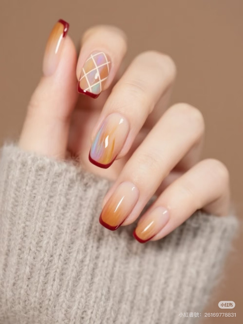 ▲琥珀暈染法式美甲散發著秋冬的暖調氛圍。圖片來源:小紅書 @羊一一
