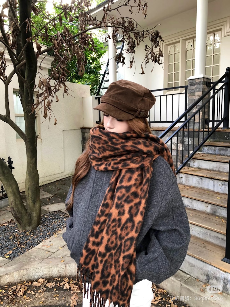 ▲豹紋圍巾是秋冬季節裡最安全、最容易上手的豹紋入門單品。圖片來源:小紅書 @汤圆子