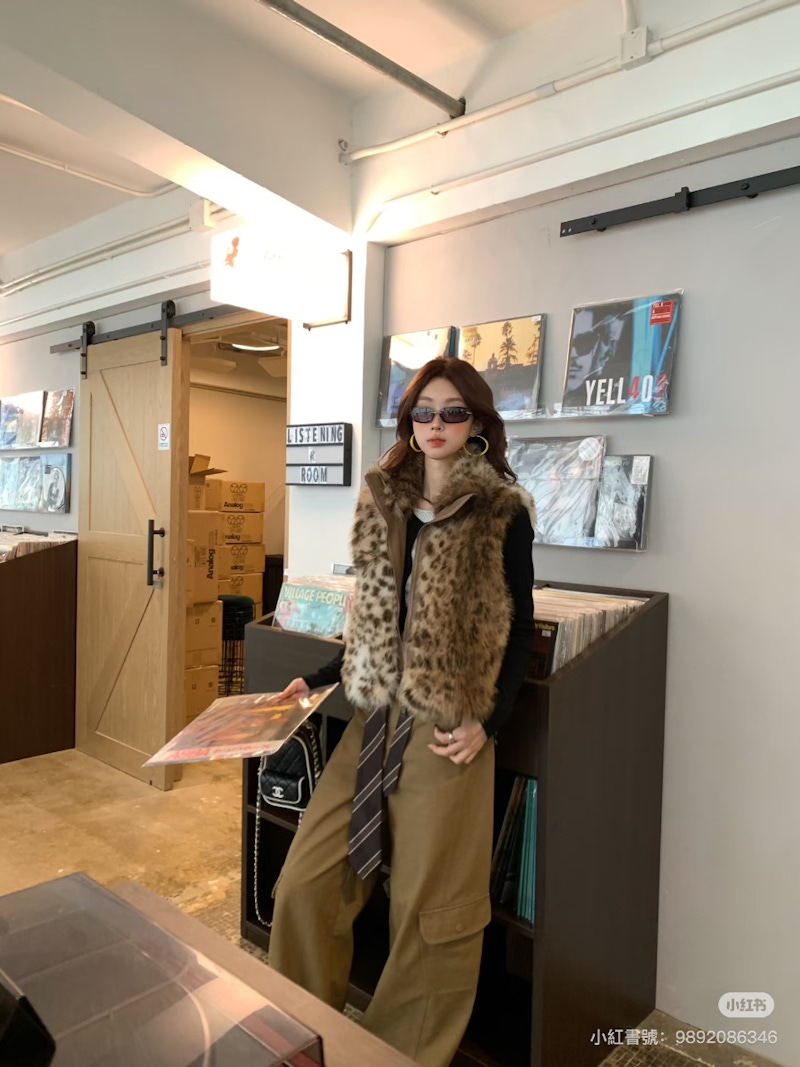 ▲豹紋毛毛背心是既能保暖又極具層次感的秋冬單品。圖片來源:小紅書 @火火 Land