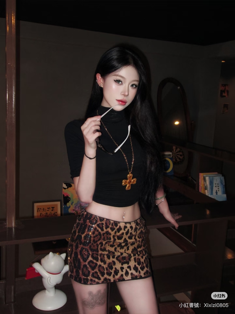 ▲豹紋短裙是展現活潑個性與修長腿部線條的絕佳單品。圖片來源:小紅書 @阿花_