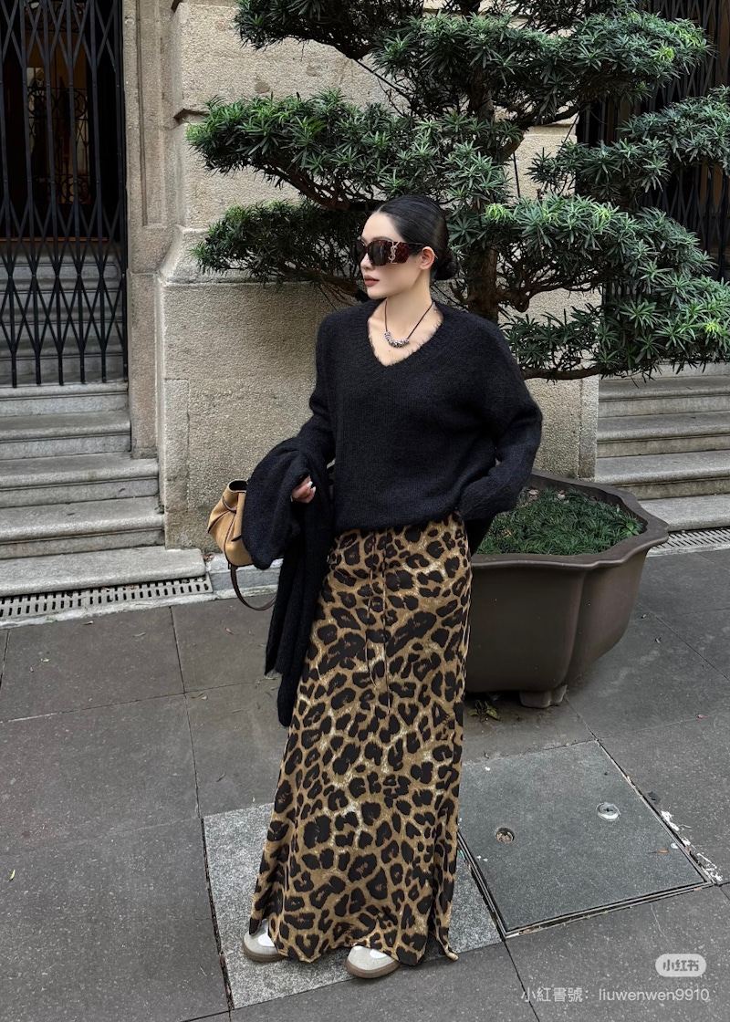 ▲豹紋長裙是浪漫與野性並存的秋冬必備單品。圖片來源:小紅書 @Liu 文文