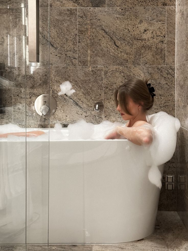 泡熱水澡是一種全身性的溫熱療法,比起局部熱敷更能全面提升體溫與血液循環。把身體浸泡在溫熱的水裡,血管會快速擴張,骨盆腔的血流也會明顯增加,能夠有效舒緩因為循環不佳所造成的悶脹與疼痛。熱水還能放鬆全身的肌肉,背部、肩頸和四肢的緊繃感也會跟著鬆開;加入玫瑰、佛手柑等香氛精油,還能同時安定情緒、改善經期容易焦慮的心理狀態,讓身心一起沈浸在溫暖、放鬆的泡澡時光之中。