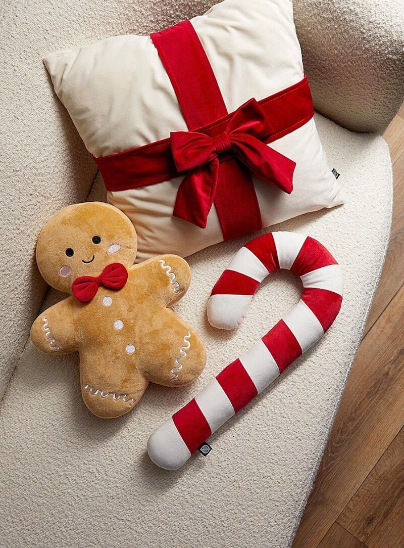 除了更換普通的抱枕套之外,選擇立體造型的聖誕抱枕也能為空間帶來趣味與焦點。薑餅人、聖誕樹、拐杖糖、雪人等特殊形狀的抱枕,不僅可以作為可愛的居家裝飾品,還能讓客廳或臥室充滿節日的童趣感,是提升空間舒適度與節慶氛圍感的實用系單品。