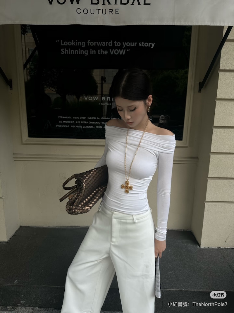 高級穿搭講究的是一種餘裕感,而「留白」正是創造這種感覺的關鍵!不需要全身包緊緊,可以適度露出鎖骨、手腕或是腳踝,讓肌膚自然成為造型的一部分;這樣的空白感會讓雲舞白看起來更輕盈、更通透,也能減少大面積白色帶來的厚重感。只要在視覺上保留一點空間,就能為整體造型增添幾分靈動度,同時也能在舉手投足之間,展現出毫不刻意卻依舊到位的優雅氛圍!